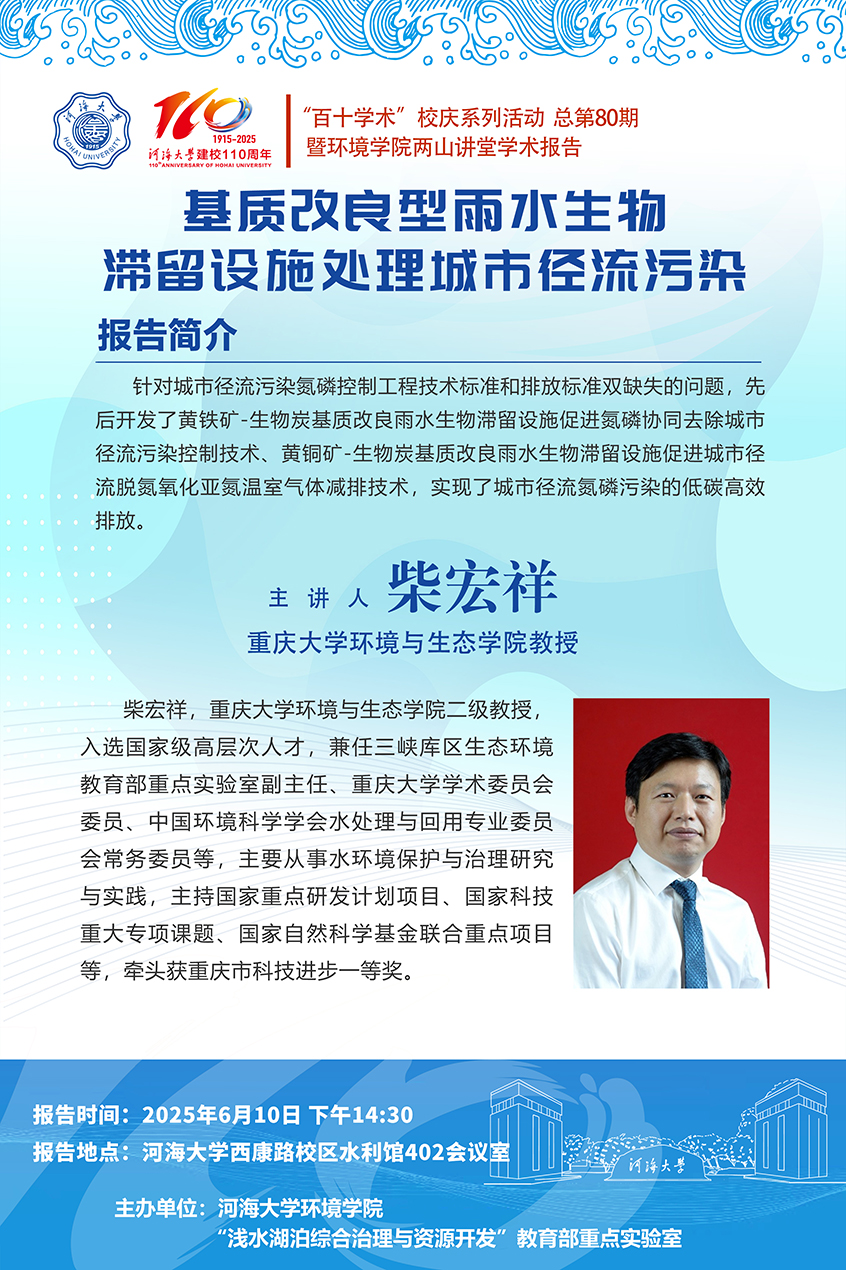 “百十學(xué)術(shù)”系列活動(dòng):基質(zhì)改良型雨水生物滯留設(shè)施處理城市徑流污染